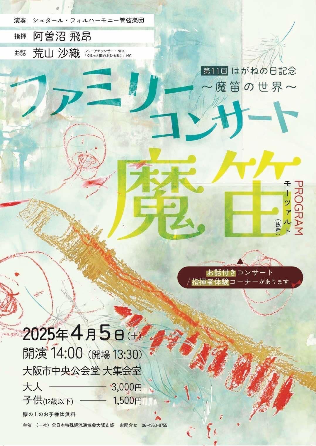 第11回 はがねの日記念Family Concert ~魔笛の世界~ 公演日:2025年4月5日(土) 開演14:00(開場13:30)指揮者:阿曽沼 飛昂演奏:シュタール・フィル... powered by...